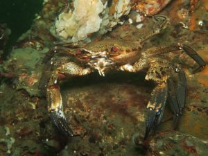 De rit naar de duikstek is vaak net zo fijn als de duik zelf, goede gesprekken en natuurlijk het uitzicht van de opgaande zon, het lijkt een mooie zondagochtend te worden. Eenmaal aangekomen is de parkeerplaats bij Den Osse vrijwel leeg en zijn we de eerste, de doorwerkzaamheden afgesloten N57 zorgt voor extra reistijd. Hey daar komt Susan aan en heel rustig gaan we de setjes opbouwen, ook Susan duikt weer in het droogpak en kunnen we straks rustig even uitloden. Mijn meter loopt terug, hmmm een kapot o-ringetje, gelukkig heeft Taco altijd reparatie set bij zich en is het probleem snel verholpen. Het bericht dat Peter, Helene en Amber wat later zijn doet ons besluiten vast te water te gaan. Zelf merk ik dat ik veel te licht ben, nee hè verkeerde loodgordel mee genomen, gelukkig met wat extra lood van Susan was ook dat probleem opgelost. Susan wacht op nog even op Amber en wij gaan linksaf met de stroming mee, altijd een mooi stuk, goed zicht en de zon in het water geeft extra kleur. We belanden in een “wolk” van kwallen en zien vervolgens van alles waar ik de namen niet precies van weet, een zeenaald en veel krabben, hele grote , hele kleine en spinkrabben, allemaal zijn ze druk, met elkaar of smikkelen aan een kwal ik zag er een zelfs die een oester probeerde te openen maar vooral zijn de meeste krabben op de vlucht als je dichterbij komt. Na 30 minuten draaien we om en gaan op een diepte van 3 a 4 meter terug, deze keer bepaald de blaas dat de duiktijd voorbij is en gaan dan ook weer vlot naar de auto terug om om te kleden. De rest van de buddy’s komen ook terug en doen, na weer warm aangekleed te zijn, een bakkie koffie met overheerlijke kruidnootjes van Susan. Het was weer een geslaagde ochtend tot een volgende keer aan de waterkant.