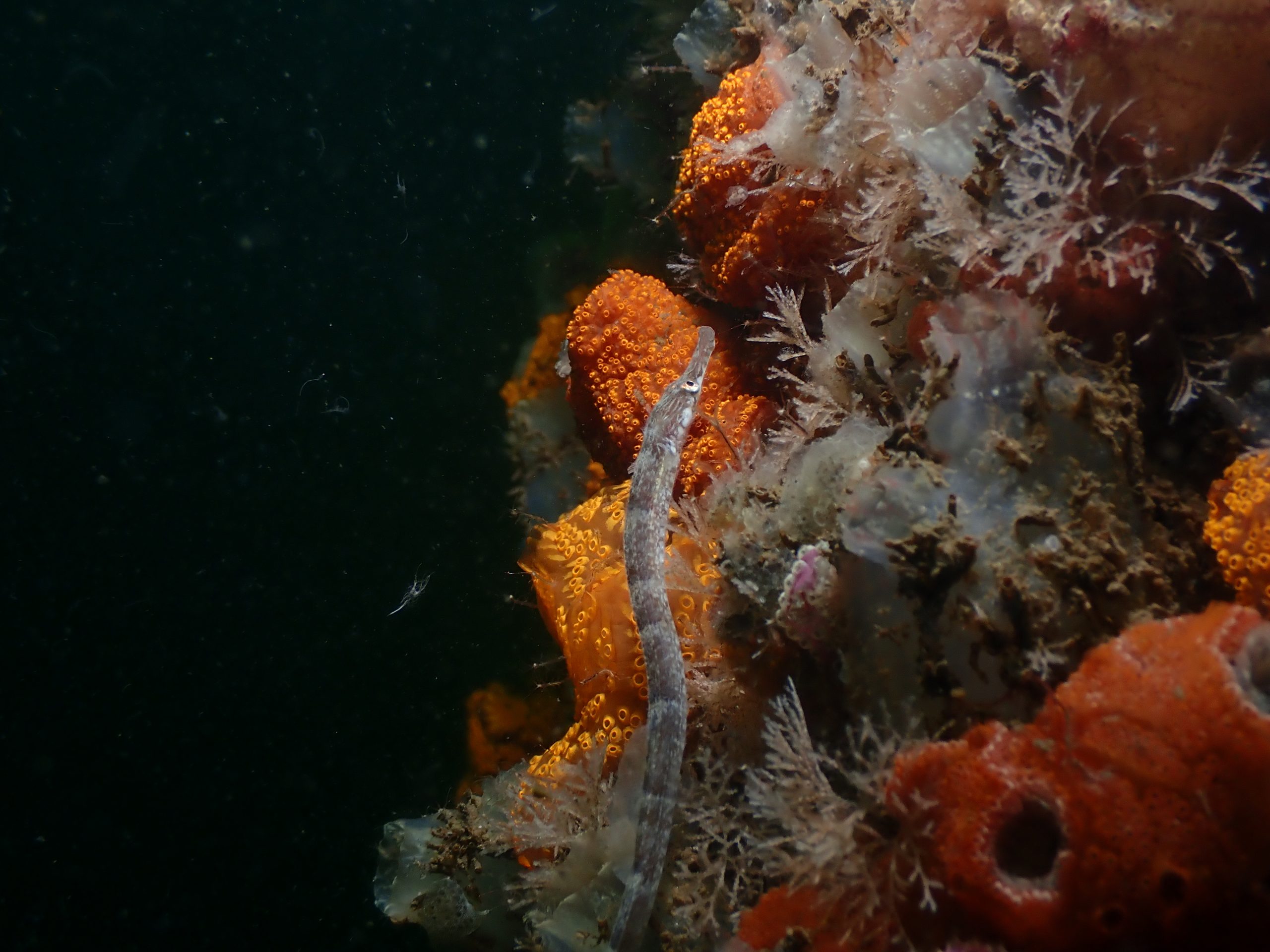 Na een kleine anderhalf uur waren ook de laatste duikers bij de trap terug. Lex en ik hadden nog een leuke ontmoeting bij de trap. Daar zwom in eens een jonge Zeenaald aan de water oppervlakte. Lex hield zijn handschoen er onder en het beestje bleef rustig op zijn hand liggen. In eerste instantie dacht Lex dat hij dood was, maar toen wij hem weer onder water hielden zwom het beestje rustig weer weg. Helaas is er vandaag door niemand van ons een Zeepaardje gevonden, dus moeten we er nog maar een keer terug om hem/haar tevinden.