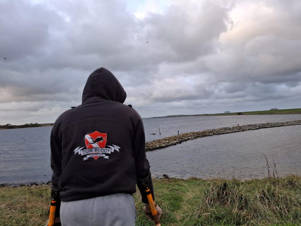 Omdat ik altijd, en ook op zondag, vroeg wakker ben was dit vandaag ook weer het geval. Lekker rustig aan kunnen doen omdat het vanuit Dordrecht maar een half uurtje rijden is. Het was onderweg ook richting Rotterdam lekker rustig op de weg. Ik reed ruim van tevoren de parkeerplaats op en niet veel later arriveerde andere duikers die er opleidingsduiken gingen maken. Even een fotootje van het van het uitzicht de groepsapp in gegooid, waarna Jos aangaf dat hij ook onderweg was. Door allerlei omstandigheden bij andere waren we vandaag maar met zijn tweeën.