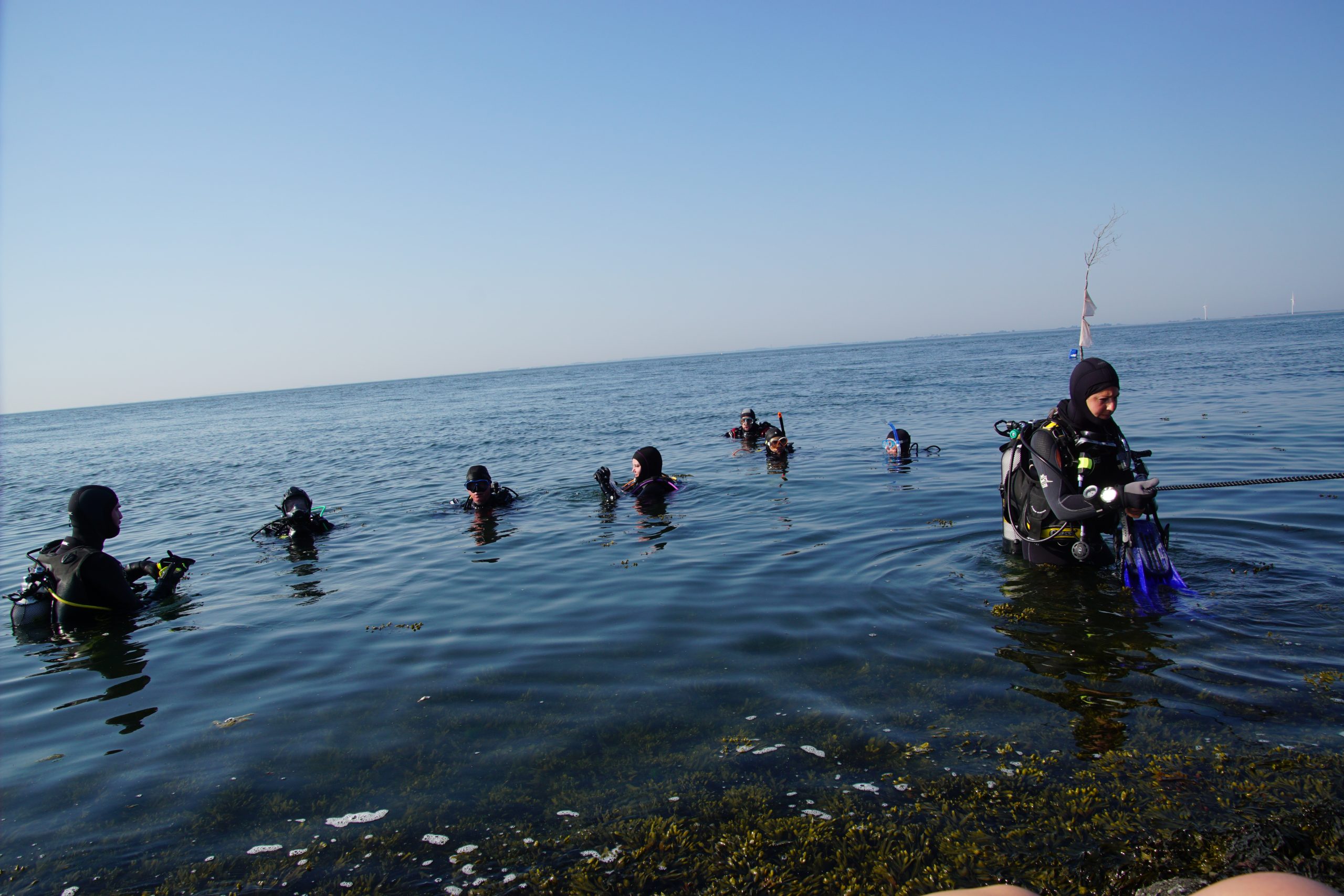 Bij de instap werd het touw aan de paal vastgemaakt, zodat er eenvoudiger in en uit het water gegaan kon worden. Rustig werden de setjes omgedaan om vervolgens te water te gaan. Daar werd rustig op de laatste buddy’s gewacht, om op deze wijze in de afgesproken buddyparen af te kunnen dalen. Het duikplan was om een half uur met de stroming mee te duiken om vervolgens na een half uur met de stroming mee terug te duiken. Wij doken namelijk op de hoogwater kentering. Zo gezegd zo gedaan! We hebben ons met de pittige stroming mee laten gaan, toen na een klein half uurtje de stroming draaide. Deze draaide niet zoals verwacht terug, maar naar de diepte. Dat was voor ons een reden om het ondiepere water op te zoeken. Daarna stopte de stroming heeeel even om vervolgens weer terug te gaan stromen. Ook nu was deze weer van redelijke snelheid.
