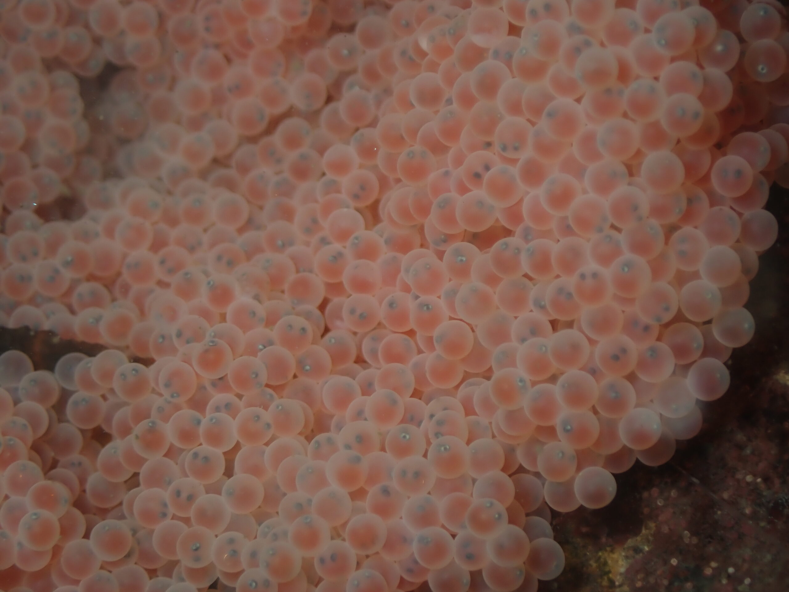 Vooraf was het duikplan besproken, eerst aan de rechter zijde zoeken bij de Reefballs om vervolgens aan de linkerzijde van het steiger verder te zoeken. Met dit plan daalde we af naar de bodem om alle Reefballs en stalenplaat af te zoeken naar Meneer de Zeedonderpad met zijn nest, maar helaas deze hebben we daar niet gevonden. Maar er was natuurlijk nog wel genoeg te zien, maar daar kwamen we nu even niet voor. Daarom werd koers gezet richting de andere kant van het steiger. Onderweg werd nog een mooie Bruine Plooislak gezien en niet ver van het steiger op een meter of vijf diepte zat pa Donderpad boven op de wacht bij zijn nest met roze eitjes, waar bij het goed inzoomen van de camera de jonkies al zichtbaar waren. Rustig nam iedereen de tijd om alles goed te bekijken, fotograferen en te filmen.