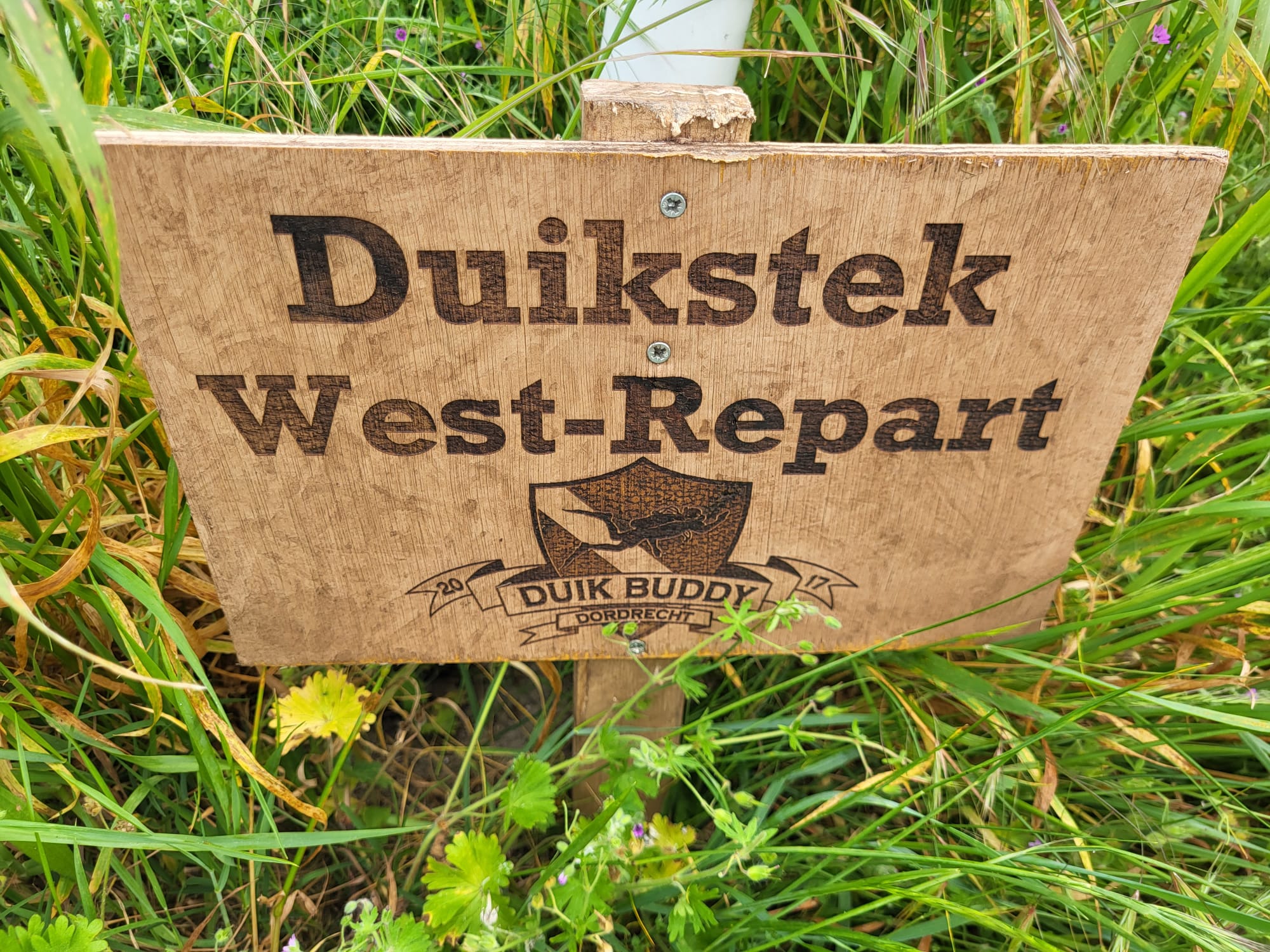 Nadat iedereen elkaar had verwelkomt werd nog even onderling gedold, maar toen ook dat klaar was liet Lex zijn gemaakte bord voor “onze” duiklocatie zien. Erg mooi gemaakt, Lex! Het houtenbord met naam van de duiklocatie en ons logo ging hij niet veel later eigenhandig bij de spoor overgang plaatsen zodat iedereen voortaan weet waar de instap van deze duikstek is. Ondertussen was de rest zich aan het voorbereiden voor de duik. Francis en Joey (neefje van Lex en Francis) gingen lekker op de sub het Grevelingenmeer op, Sandra ging op haar beurt even lekker een stukje zwemmen terwijl de rest van de groep richting de instap liep. Sandra was inmiddels alweer aan de terug weg begonnen toen wij de instap bereikte en ons klaar maakte om richting de hangcultuur te zwemmen (boven water).