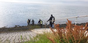 Een half uur nadat onze duikers waren vertrokken, stond er een file op de duiktrap van duikers die de grens waren over gestoken om het mooie onderwaterleven van Nederland te bekijken. Maar of ze veel hebben gezien vragen wij ons af, want op 30 meter is er niet zoveel te zien. Dezelfde file stond een driekwartier later weer op de trap, nu alleen om weer naar boven te gaan. Gelukkig gaan onze duikers iets zuiniger met hun lucht om en zij kwamen boven water nadat file weer weg was. Na zo’n tachtig en negentig minuten wachten kreeg Paul van de bovengekomen duikers het sein “veilig”.