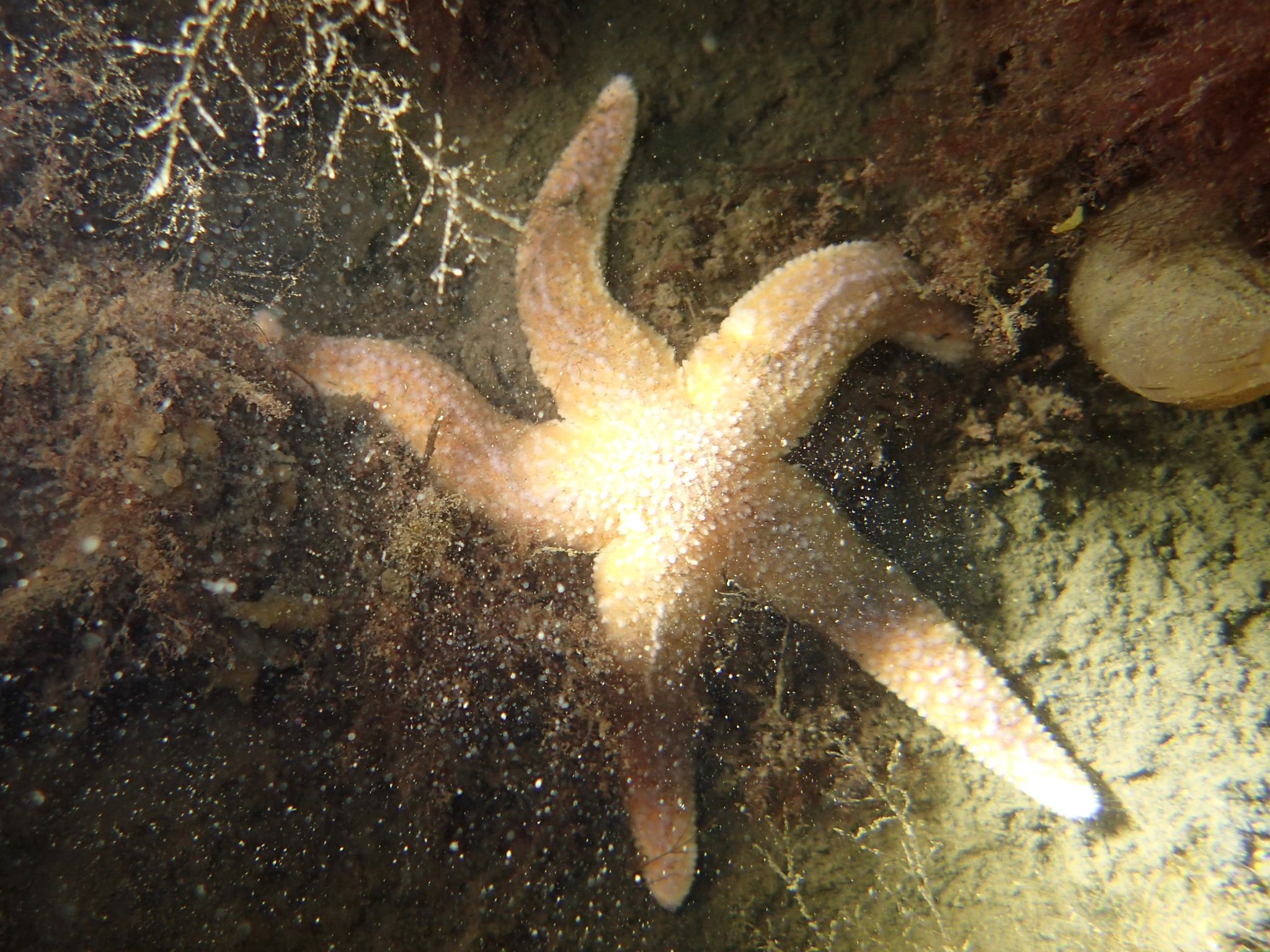 Omdat de bolderkar van Lex vorige week de terug weg van de instap naar de auto’s niet helemaal heeft overleefd had Taco vandaag een kruiwagen mee genomen om mijn spullen naar de instap te brengen, wat trouwens uitstekend werkte. Het was nog enkele uren voor hoogwater toen wij te water gingen en enkele van ons nog van een vorige keer wisten dat de trap hier best glad kon zijn werd iedereen voor het betreden van de trap gewaarschuwd. Een voor één daalde de buddyparen af en verdwenen ze onderwater. Iedereen dook eerst rechtuit vanaf de trap gezien om vervolgens bij het afdalen bij de wand tegen de stroming in naar rechts te duiken. De stroming bracht veel stof en los drijvend/zwevend wier met zich mee waardoor het zich matig was, ongeveer maximaal 2 á 3 meter. Veel jong leven zoals Kreeften, Botervisjes (heel klein…nog geen 5 cm), platvisjes. Maar ook veel Grondels, Zeenaalden, Hooiwagenkrabben, Groene Wier- en Harlekijnslakken. Ook werd nog Satijnslak (10 cm) gezien op de zandvlakte op een diepte van ongeveer 9 meter. De laatste duikers draaide na ongeveer 50 minuten en ze dachten op de stroming weer snel terug te zijn, maar dat viel tegen wand de stroming was gedraaid waardoor ze dus niet meer met de stroming terug konden zweven, maar moesten zelf dus inspanning leveren om ook terug te komen. Maar met een minimale watertemperatuur van 14,6 meter op 10 meter was het erg aangenaam onderwater. Het zijn ook altijd dezelfde zullen ze aan de kant gedacht hebben toen Lex en ik na 86 minuten onze duikkappen bovenwater staken.