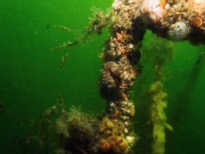 Soms moet je op je buddy´s vertrouwen en in dit geval moest ik dit doen. Doordat ik mijn hoofd omdraaide om te kijken waar 1 van mijn buddies was, liep plots mijn masker vol met water. Natuurlijk is er dan niks aan de hand want we hebben geleerd om dit op te lossen. Maar hierdoor sloeg mijn masker enorm aan met condens. Nog net wat hand signalen kunnen zien en amper mijn computer kunnen aflezen ben ik rustig aan door gegaan met het volgen van mijn buddies. Op het moment dat we naar ondieper water gingen heb ik nog de aandacht gevraagd en seinde ik dat ik mijn masker ging afzetten om hem schoon te maken en weer terug op te zetten. Dit hielp iets maar het was niet ideaal. Rustig aan zijn we richting de steiger gezwommen en iets ervoor stegen we na een 87minuten op. Al met een goede duik ondanks het zicht. Het watertemperatuur was ook heerlijk met een 18graden Celsius op 8mtr.